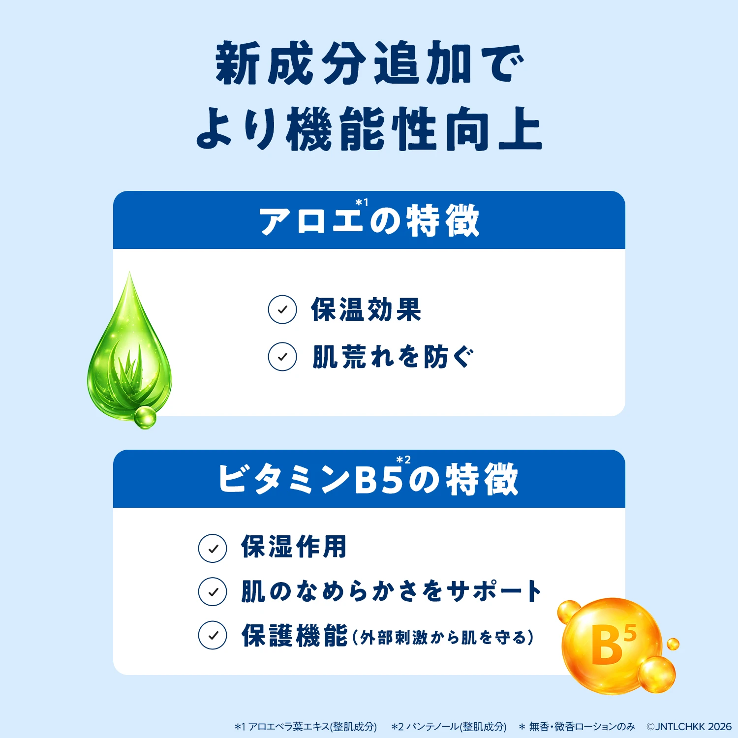アレルギー/ 皮フ刺激性テスト済み(全ての方にアレルギー・刺激が起こらないというわけではありません)ココナッツオイル※1、アロエ※2、ビタミンB5※3配合。