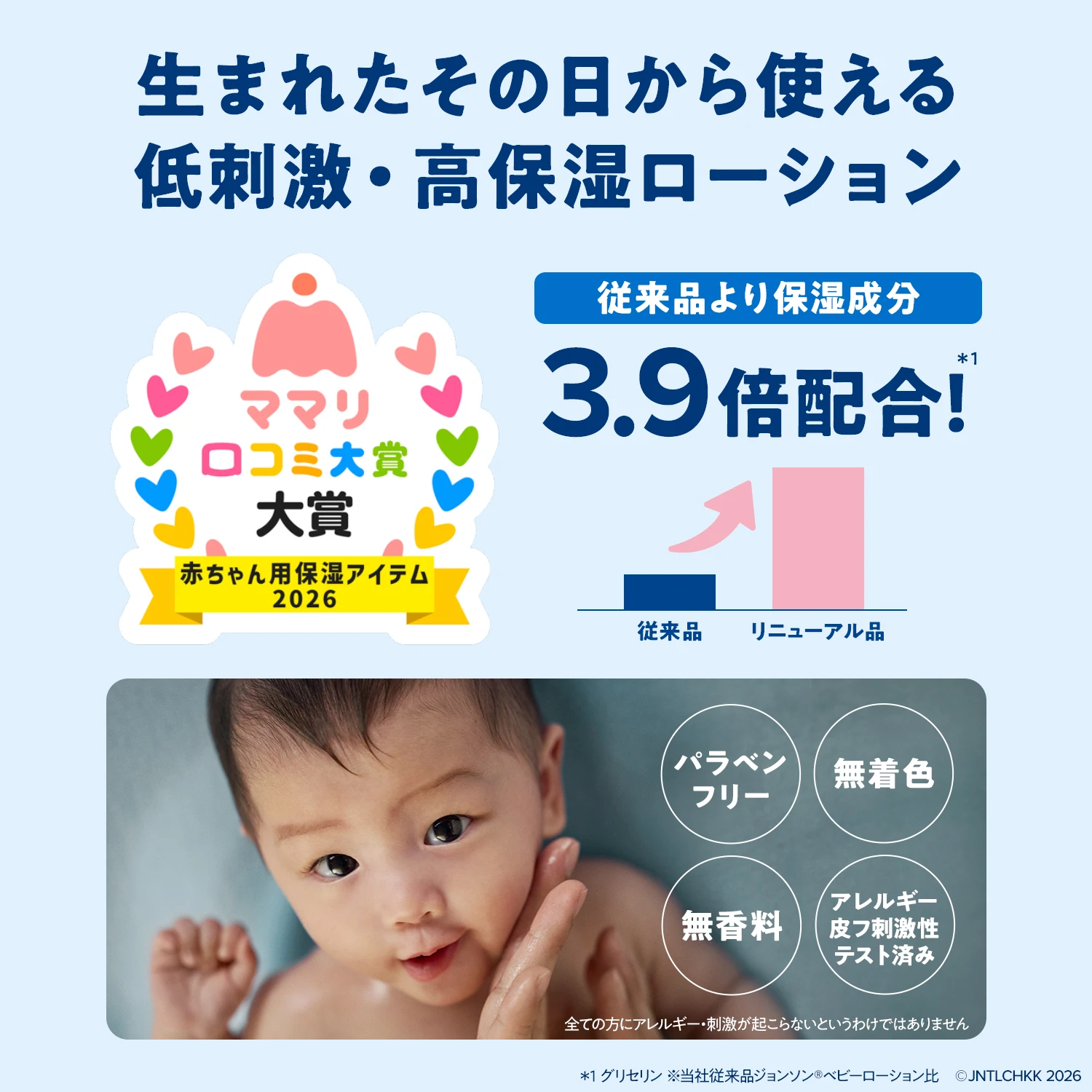 ベビー保湿成分(グリセリン)が肌にうるおいを与え、肌荒れや乾燥から保護