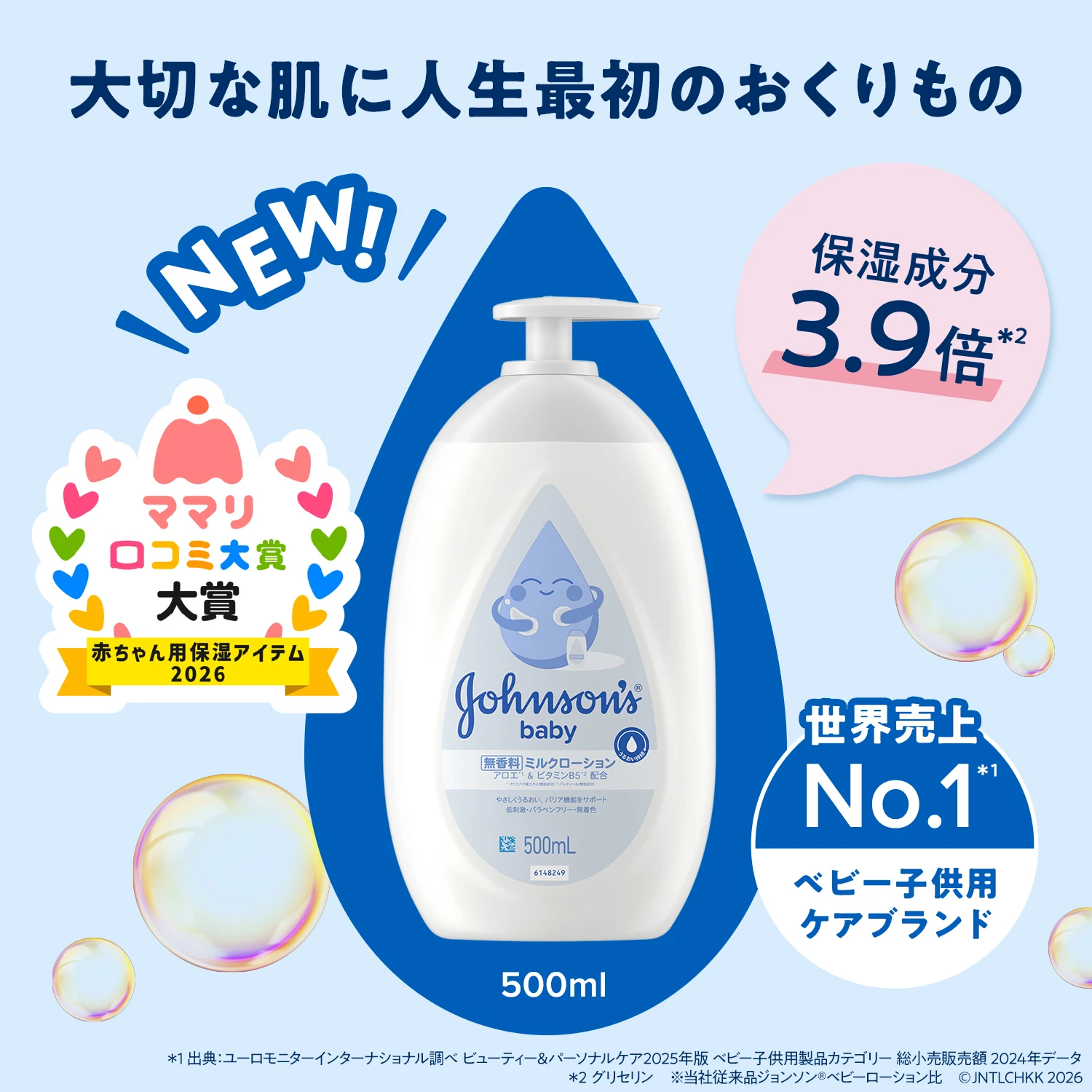1本で顔もからだにも使えるデリケートな赤ちゃんの肌にやさしい全身ベビーローション(低刺激)。