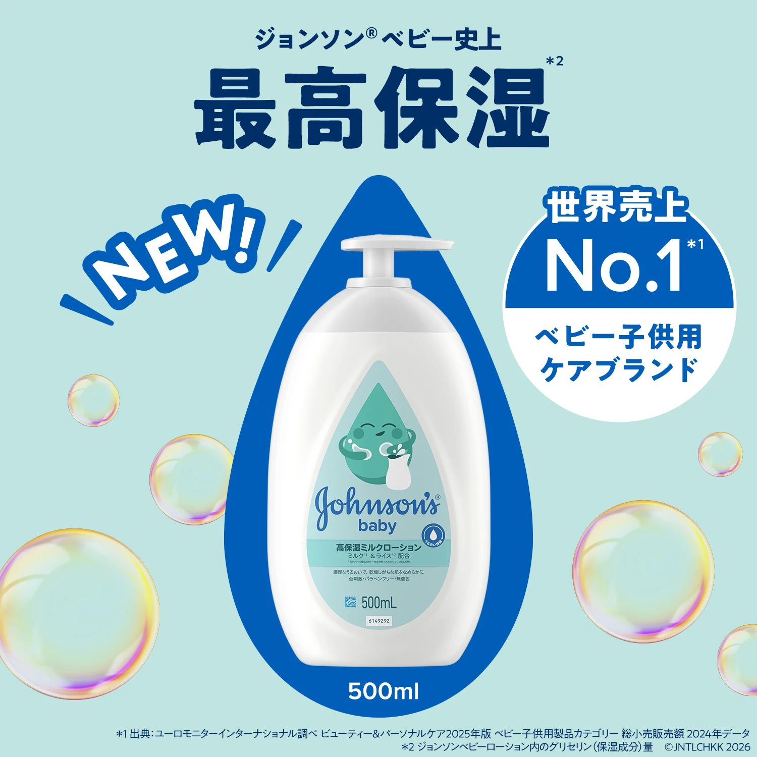 ジョンソン®ベビー史上最高保湿*(グリセリン配合)5種のうるおい成分*1配合の高保湿シリーズです。濃密なうるおいで肌をバリアし、お子さまの健やかな肌を保ちます。* 当社従来品ジョンソン®ベビーローション比