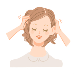 手の平全体になじませた後、手の甲、指を頭皮にあて、頭皮全体をほぐすようにやさしくマッサージします。