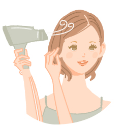 ドライヤーなどで髪を乾かします。髪にうるおいを与えます。